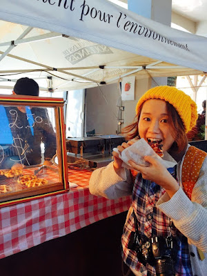 編集長が匂いにつられてフラフラと買った焼き立てふわふわのワッフル。