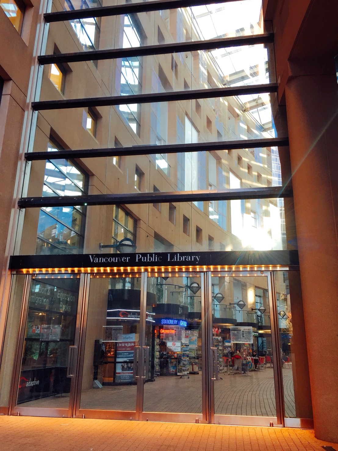 バンクーバー公共図書館は1995年に設立されたカナダ最大級(第3の規模)の図書館です。広大で様々な国籍の人が利用している、インターナショナルな雰囲気。